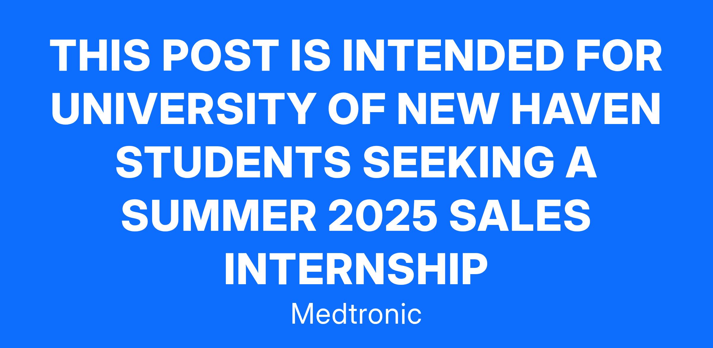 THIS POST IS INTENDED FOR UNIVERSITY OF NEW HAVEN STUDENTS SEEKING A SUMMER 2025 SALES INTERNSHIP