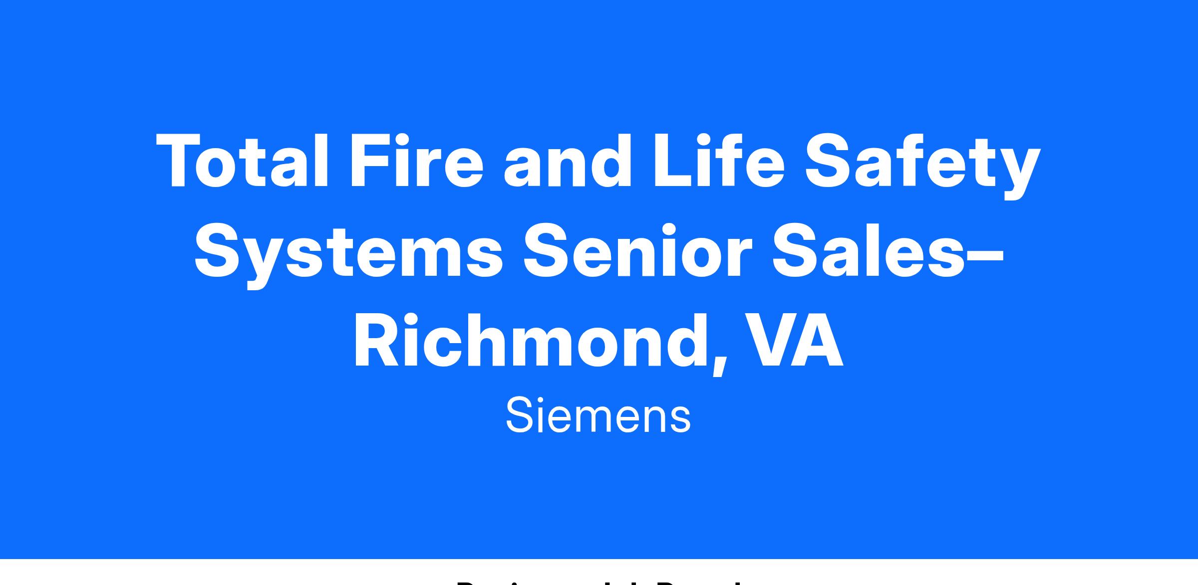 The Service Senior Sales Executive is committed to supporting our Service Agreements business within our commercial Smart Buildings Total Fire Alarm & Life Safety Service team. Our Sales team supports our Operations team whose focus is to perform fire/life safety service and maintenance in large commercial buildings such as hospitals, universities, and industrial facilities. Why is this so important? Our Sales Executives are ambassadors of quality Siemens technology, products and services, and your expertise and regular interaction with the customers will help them optimize and facilitate a safe, emergency-ready workplace.