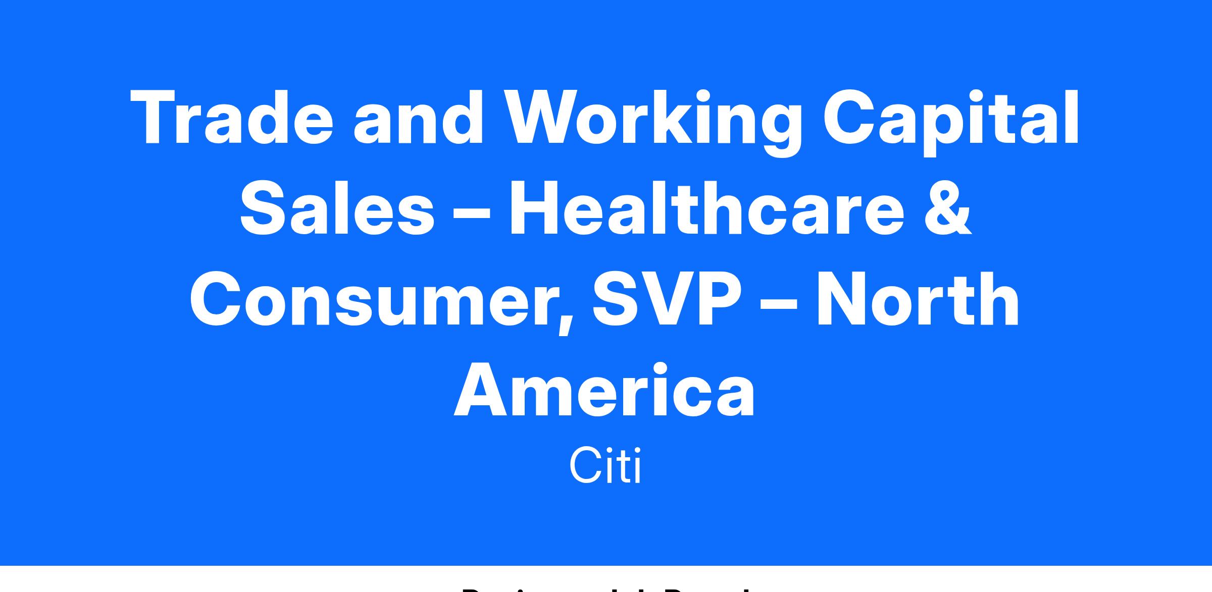 The SVP of Sales and Working Capital is a strategic professional who manages and expands an existing book of business but can also originate opportunities with new clients to Citi trade. Excellent communication skills are required in order to collaborate internally with all levels of colleagues. Accountable for the growth and management of existing portfolio as well as looking for new opportunities with new clients to trade. Excellent communication skills required in order to negotiate internally, often at a senior level. Developed communication and diplomacy skills are required in order to guide, influence and convince others, in particular colleagues in other areas and occasional external customers. Accountable for significant direct business results or authoritative advice regarding the operations of the business. Necessitates a degree of responsibility over technical strategy. Primarily affects a sub-function. Responsible for handling staff management issues, including resource management and allocation of work within the team/project.