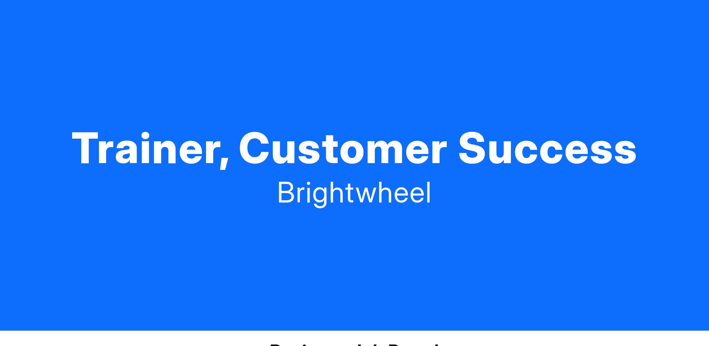 brightwheel is seeking a trainer for our customer-facing teams. You are a teacher and coach at heart and are excited to connect our customer-facing teams with the skills they need to best serve our customers. In particular, you are excited to help new team members ramp over their first 30 days by fully owning their ramp plan. This will include ownership over training and ensuring new customer-facing team members are hitting the necessary metrics in their first 30 days at brightwheel.