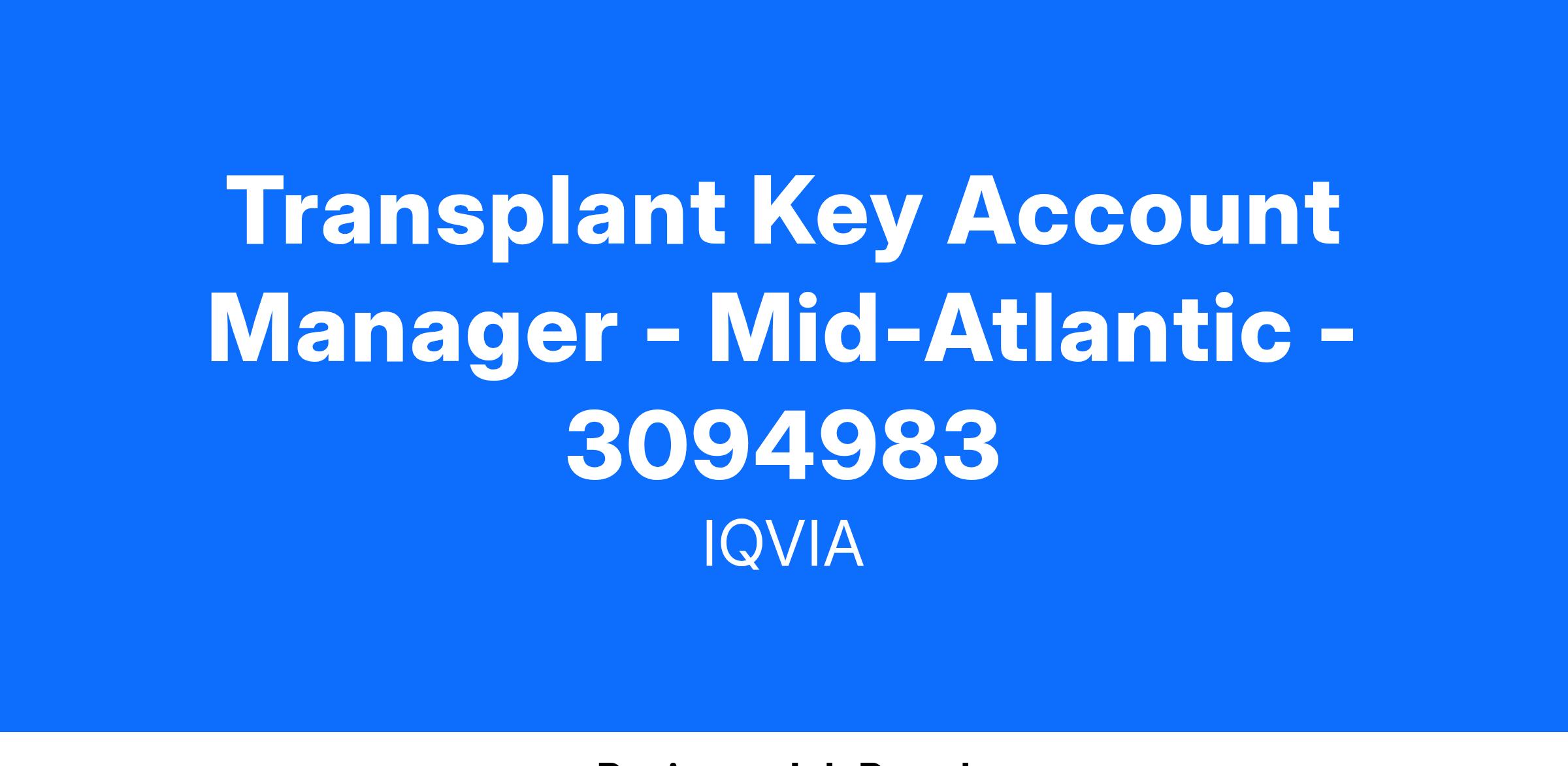 Transplant Key Account Manager - Mid-Atlantic - 3094983