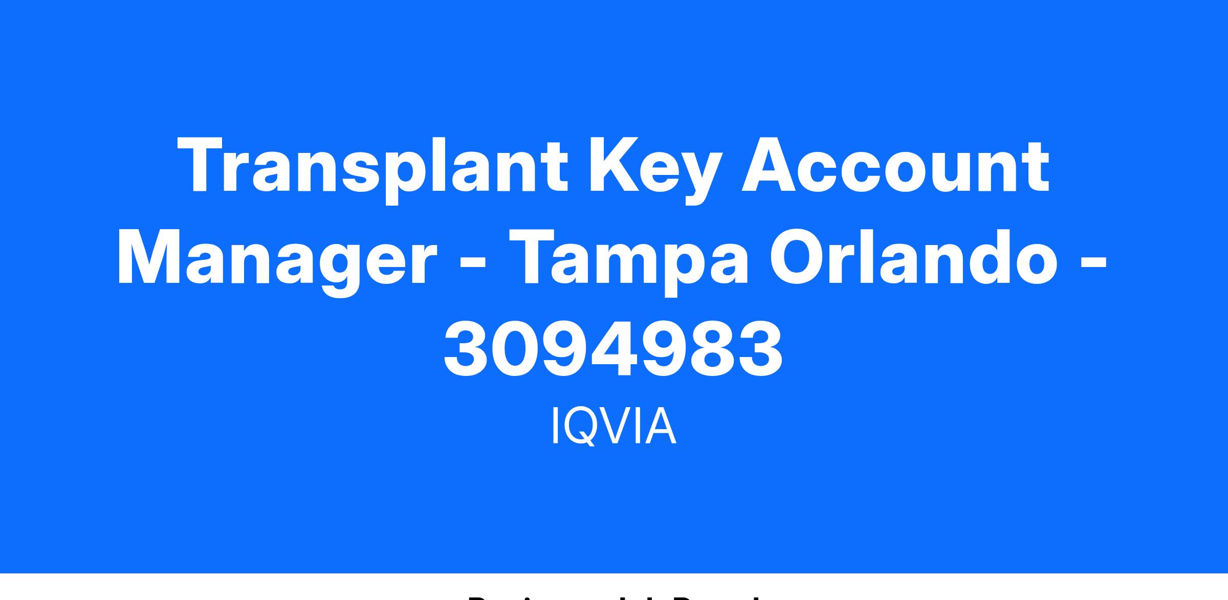 Transplant Key Account Manager - Tampa Orlando - 3094983