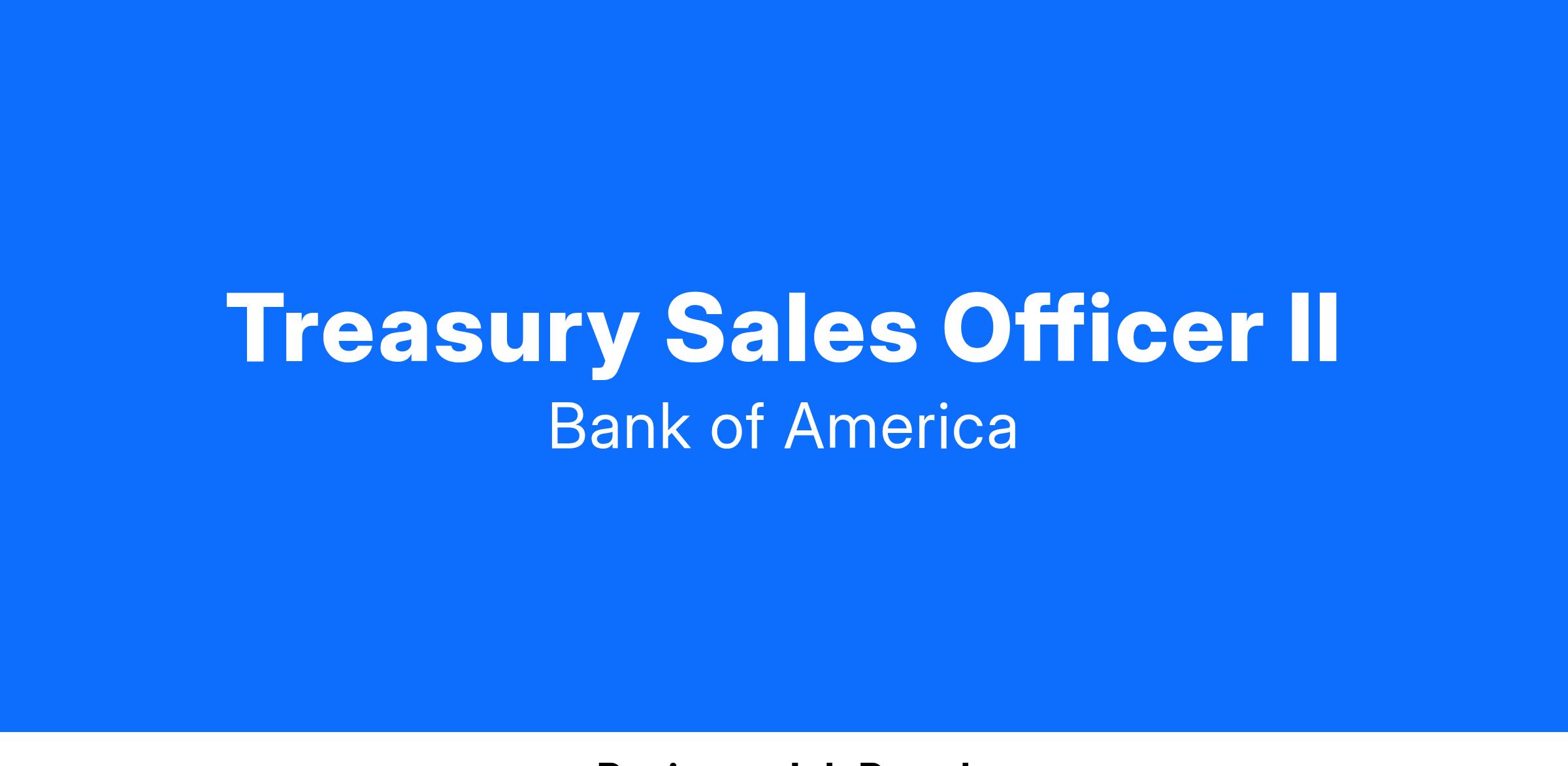 Participation in projects to advance our broader business and coaching of junior team members, especially Treasury Sales Associates and Analysts, is expected.