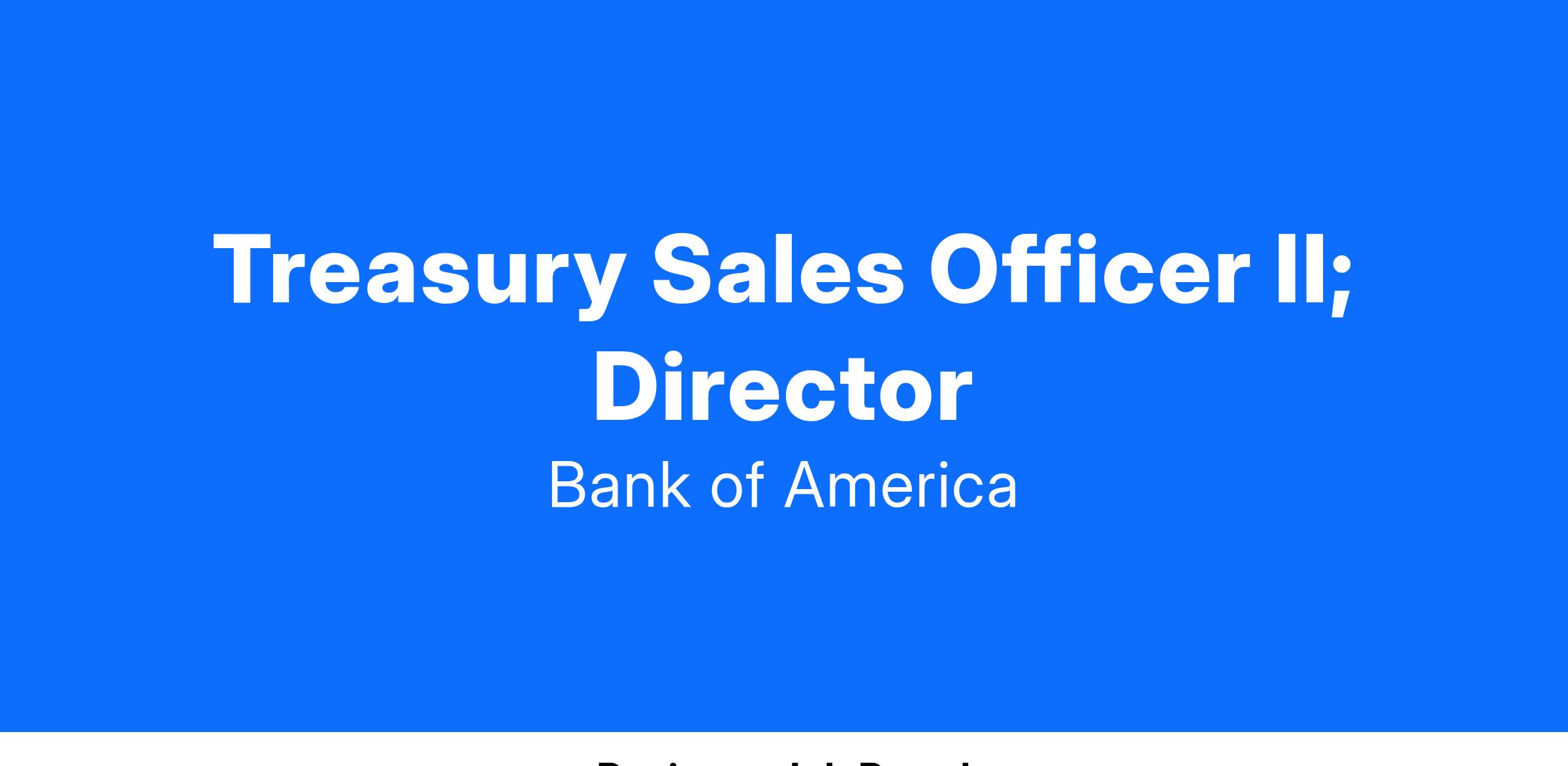 Treasury Sales Officer is responsible for delivery of integrated treasury solutions to Private Bank clients. Partner closely with client-facing teammates to consult on sales opportunities and provide the product expertise and consultation necessary to deliver the best possible solution to the client. TSO is an extension of the Private Bank team working with the more complex Private Bank clients which typically include Family Office, Real Estate, Private Equity and Business Owners.