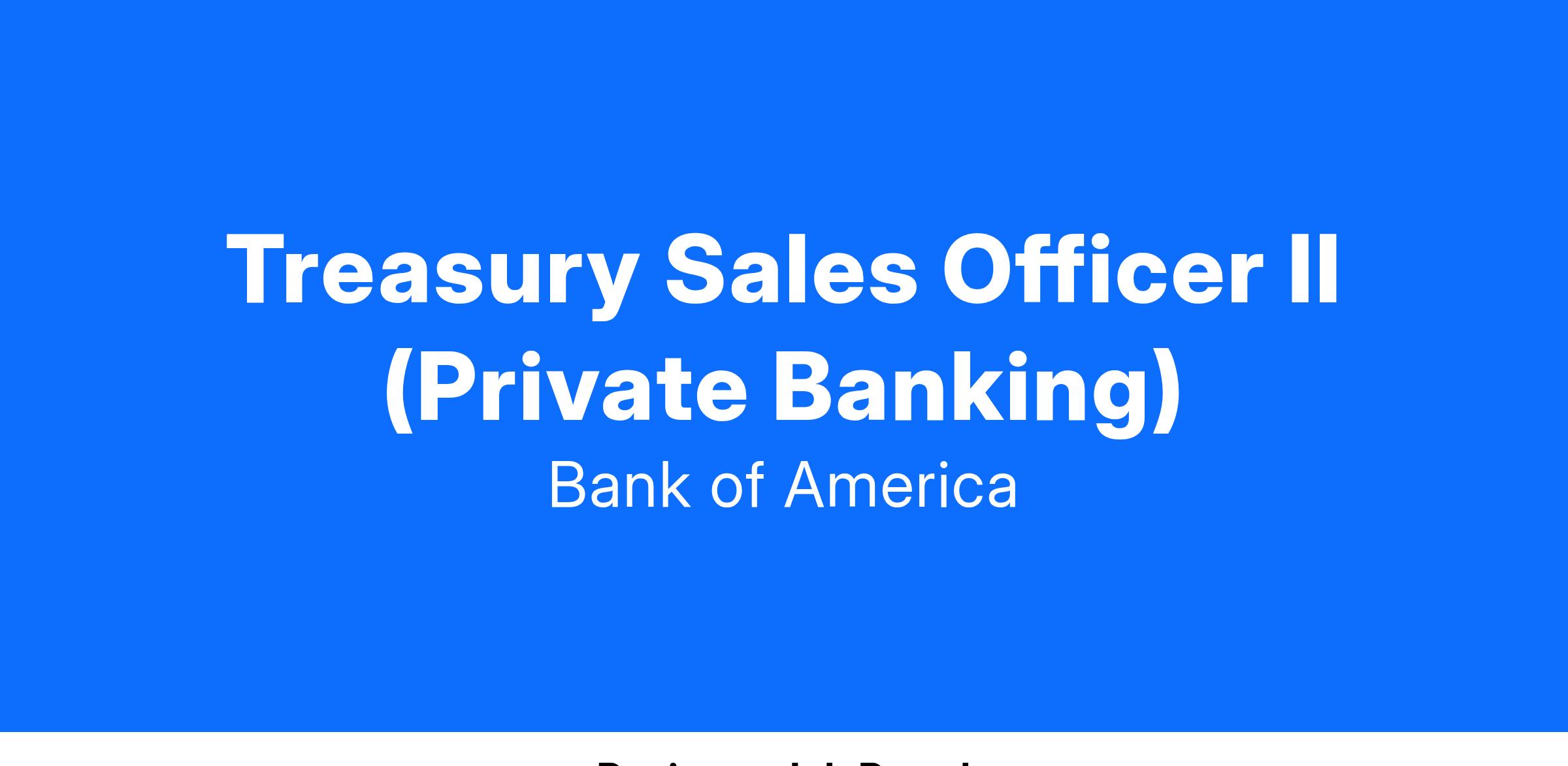 This position may also be filled as a Treasury Sales Officer I