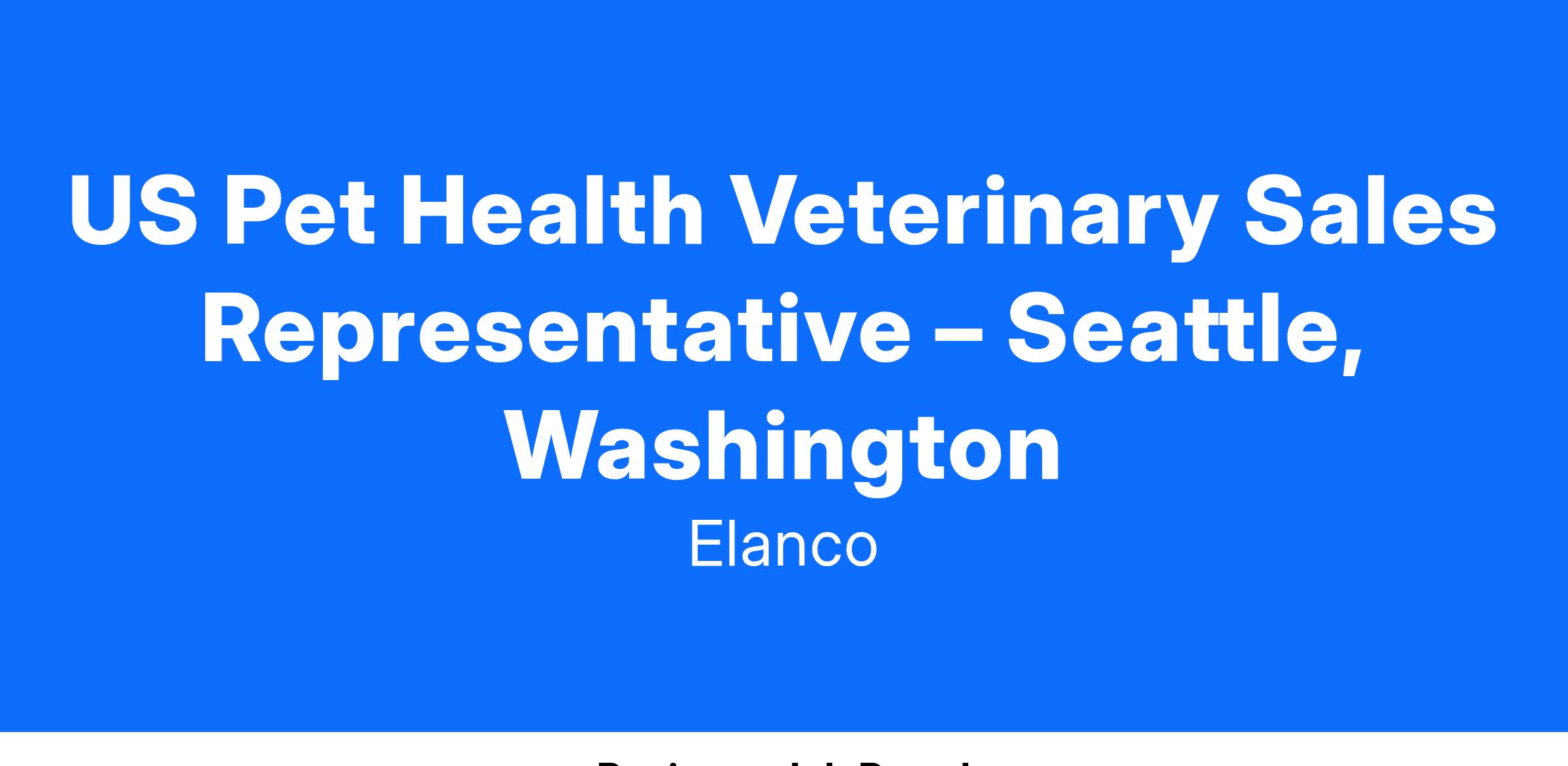 As a Veterinary Sales Representative on the US Pet Health team, you’ll engage with veterinary customers to achieve a sales goal with Elanco products within an assigned geography. Pet Health Veterinary Field Representatives will play an important role in our success as we embark on a historic launch period for Elanco Animal Health and the Pet Health Organization.