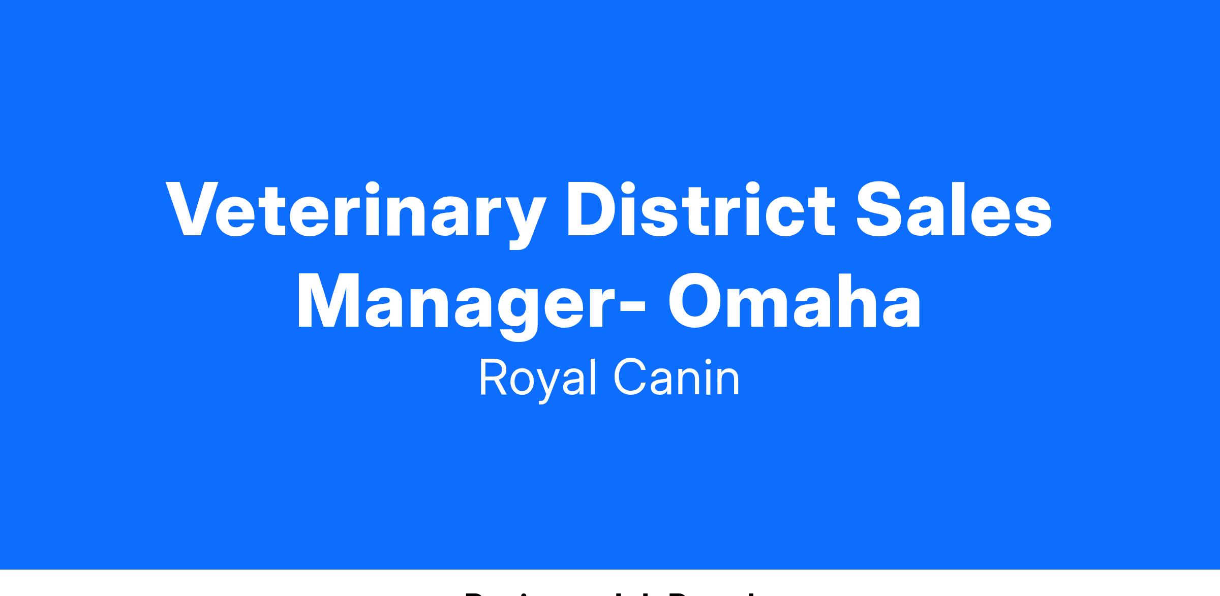 Veterinary District Sales Manager –Royal Canin
