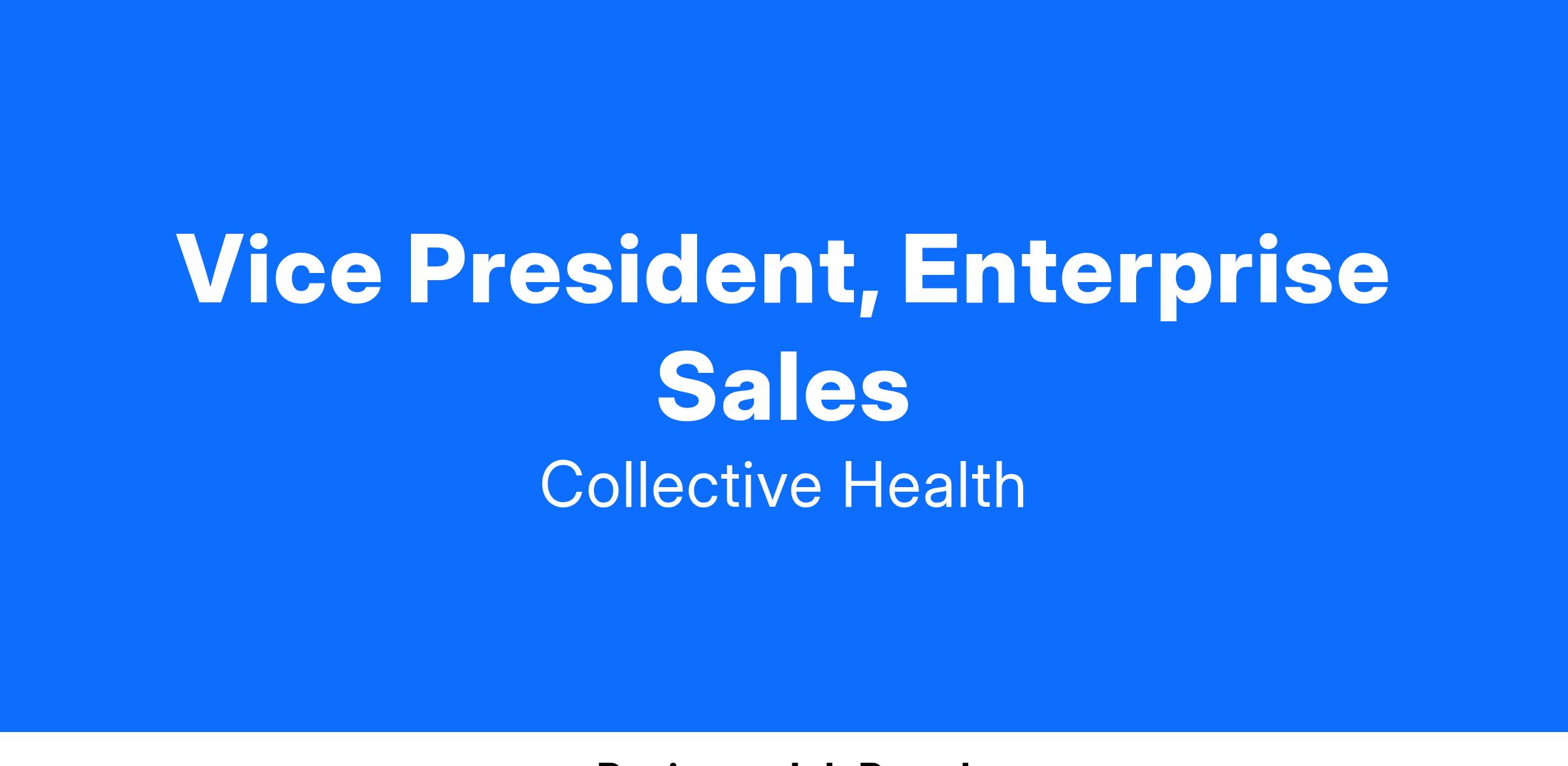 As Vice President of Enterprise Sales at Collective Health, you will be responsible for managing our team of Regional Vice Presidents. You will employ effective selling strategies to position Collective Health as an alternative to traditional TPA and benefits solutions.