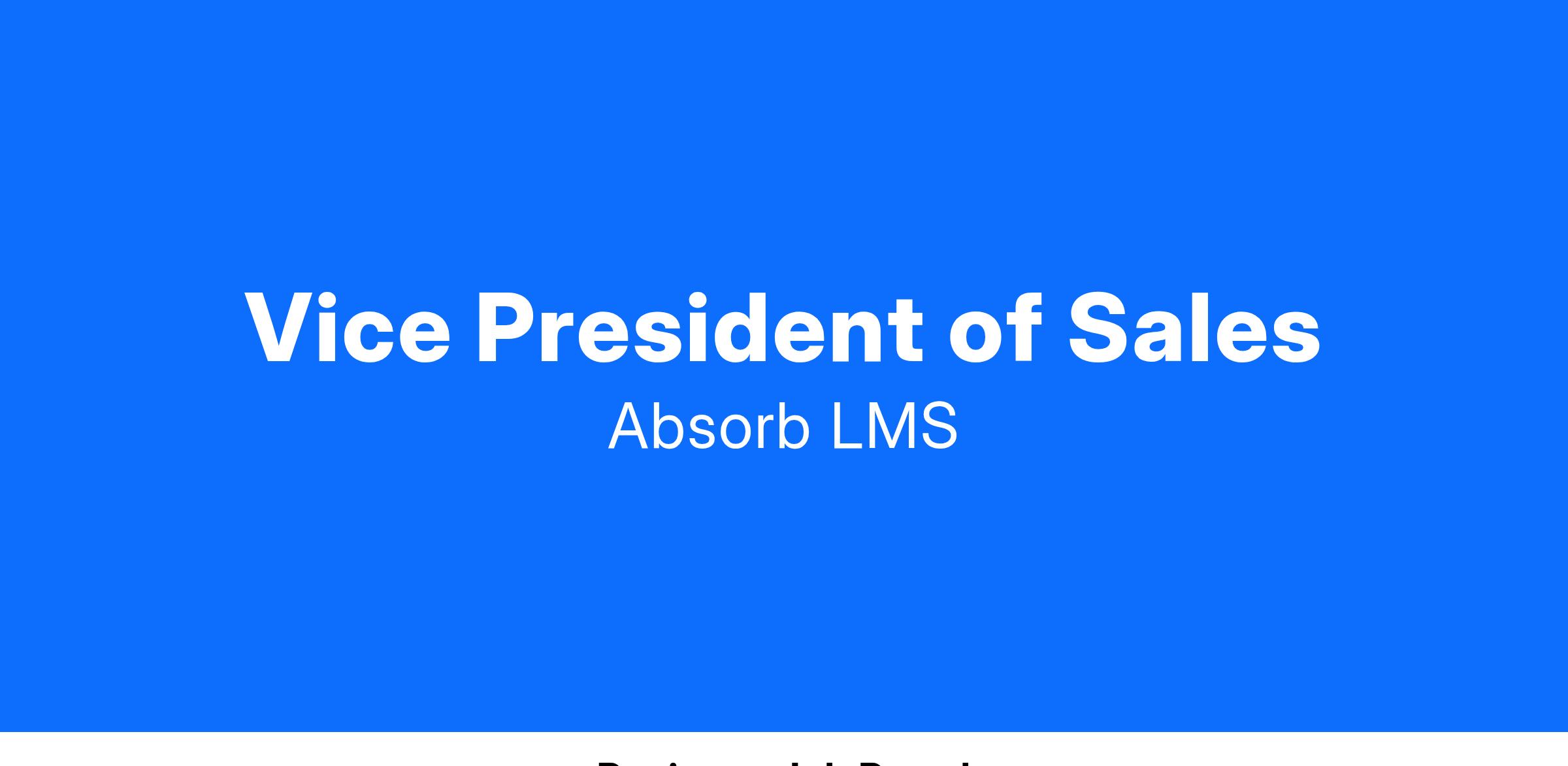 As VP of Sales, you�ll drive growth by leading the sales process and building strong, consultative client relationships. At Absorb, we�re redefining learning technology to help organizations unlock their potential, and your leadership will deliver tailored solutions that turn learning into a strategic advantage. By focusing on what matters, you�ll help companies embrace the future of work and transform their learning culture into a powerful revenue engine.