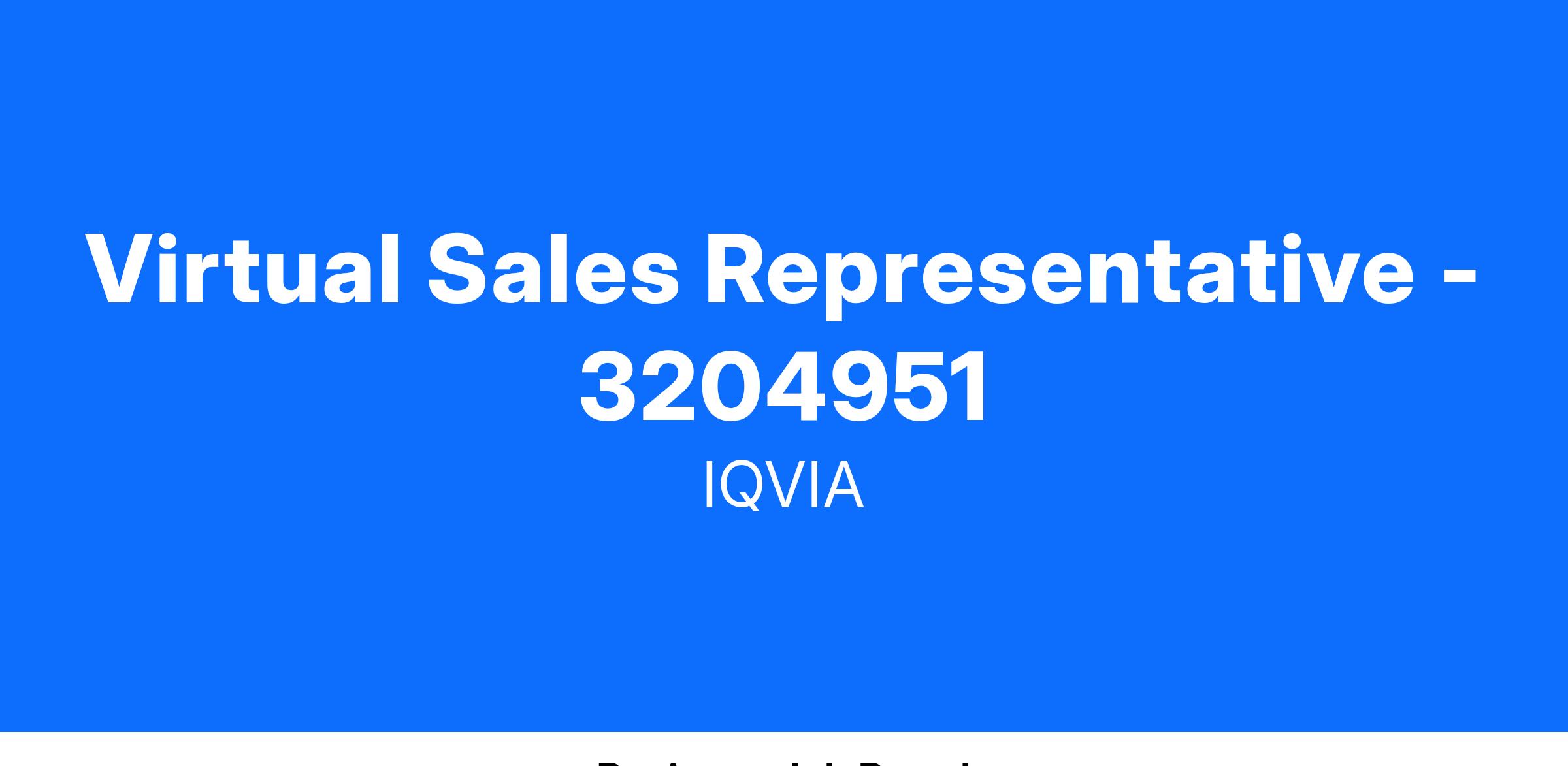 IQVIA is a leading global provider of clinical research services, commercial insights and healthcare intelligence to the life sciences and healthcare industries. We create intelligent connections to accelerate the development and commercialization of innovative medical treatments to help improve patient outcomes and population health worldwide. Learn more at https://jobs.iqvia.com