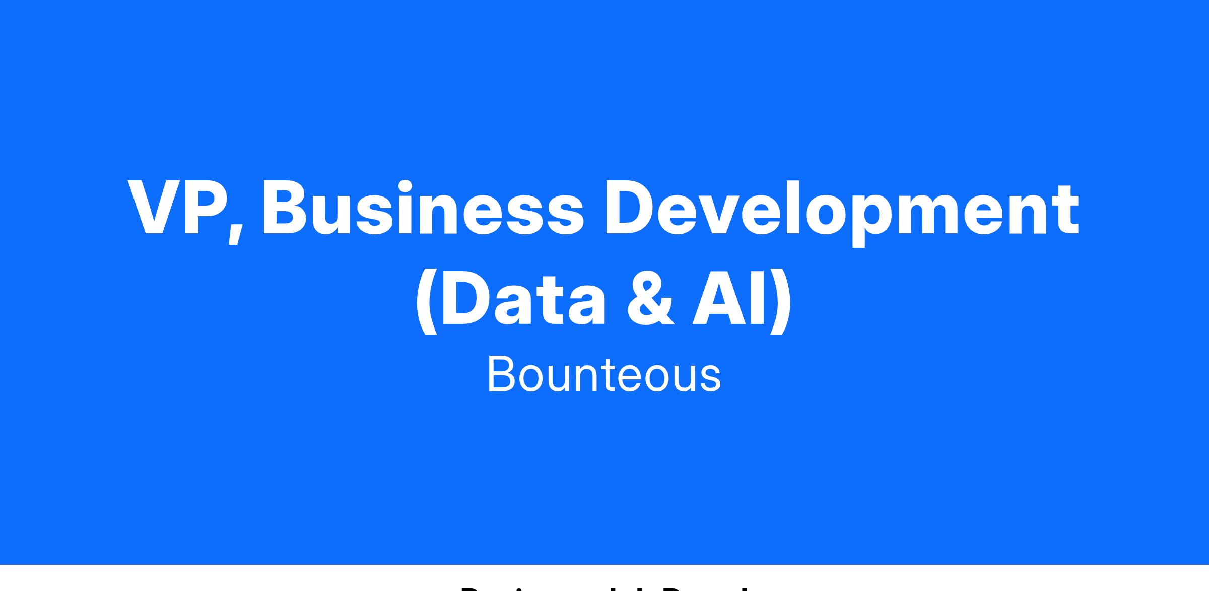 We are seeking a Vice President of Business Development to drive growth within our Data & AI practice. This role involves leveraging extensive expertise with platform partners such as Databricks, Snowflake, AWS, Microsoft, and Google Cloud, along with established relationships with sales professionals and presales teams, to generate leads and strategically position Bounteous x Accolite (BxA)'s capabilities and offerings to address critical client challenges.