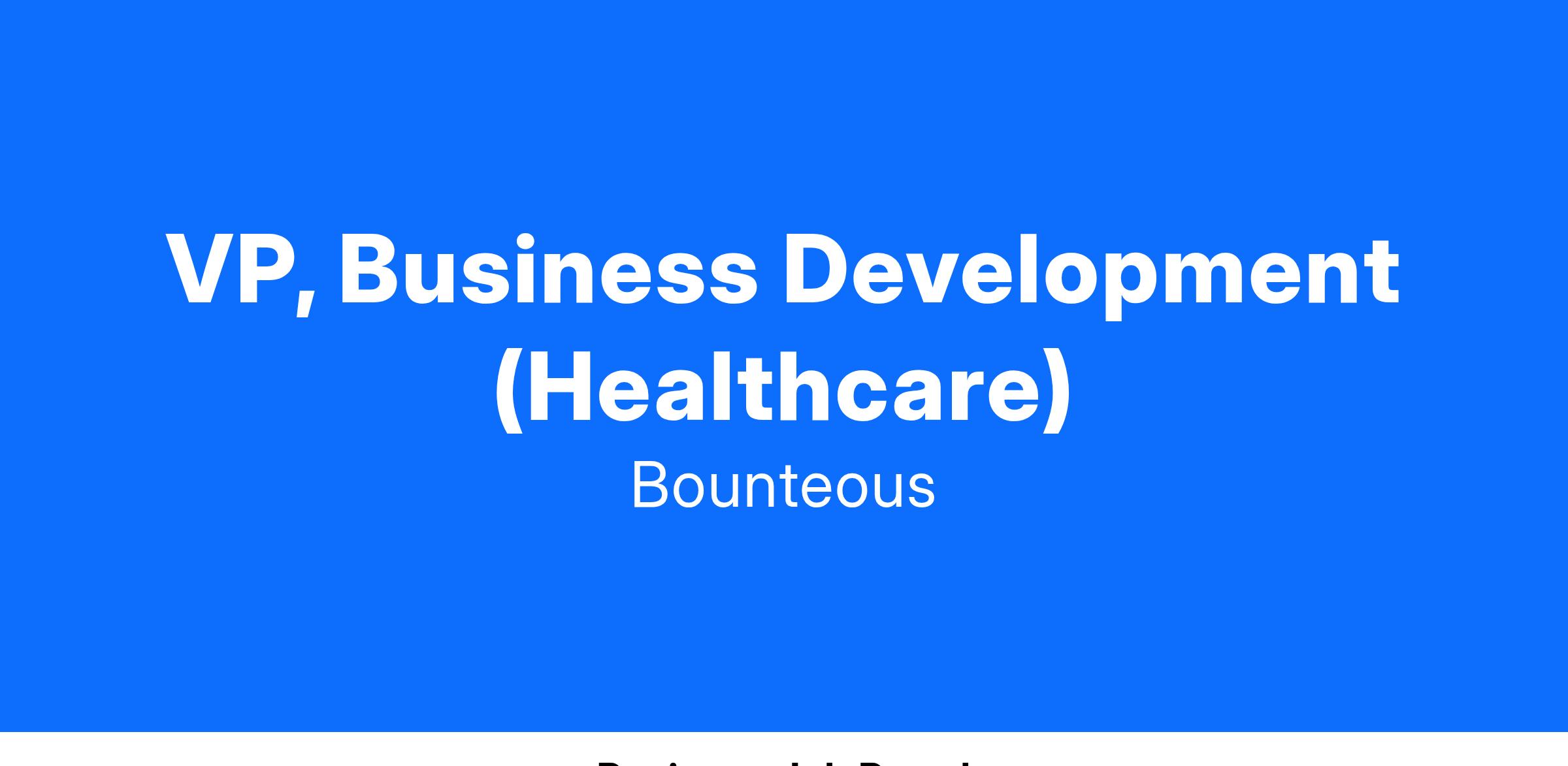 We are seeking a dynamic Vice President of Business Development to lead growth within our Healthcare vertical, specifically focused on selling services that address data and technology challenges faced by healthcare companies. This pivotal role emphasizes positioning Bounteous as a strategic partner to clients undergoing business transformation enabled by technology modernization and innovation.