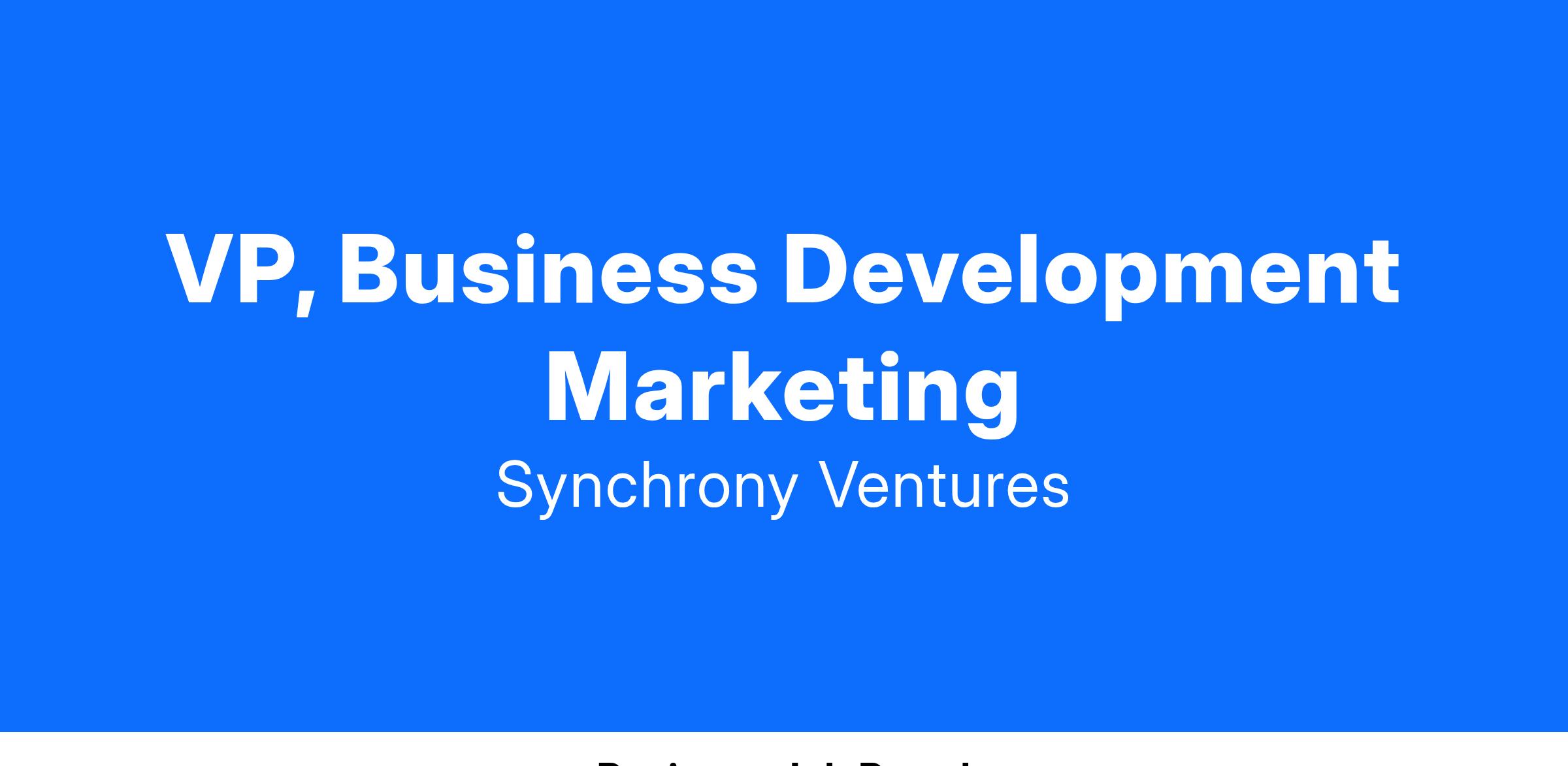 The VP, Business Development Marketing will represent the marketing and growth organization in assigned platforms in all aspects of the business development process. Working collaboratively with the business development, pricing, technology, credit, and growth organizations, this individual will develop and implement strategies and tactics to achieve Synchrony new business growth metrics as well try to win and launch new deals.