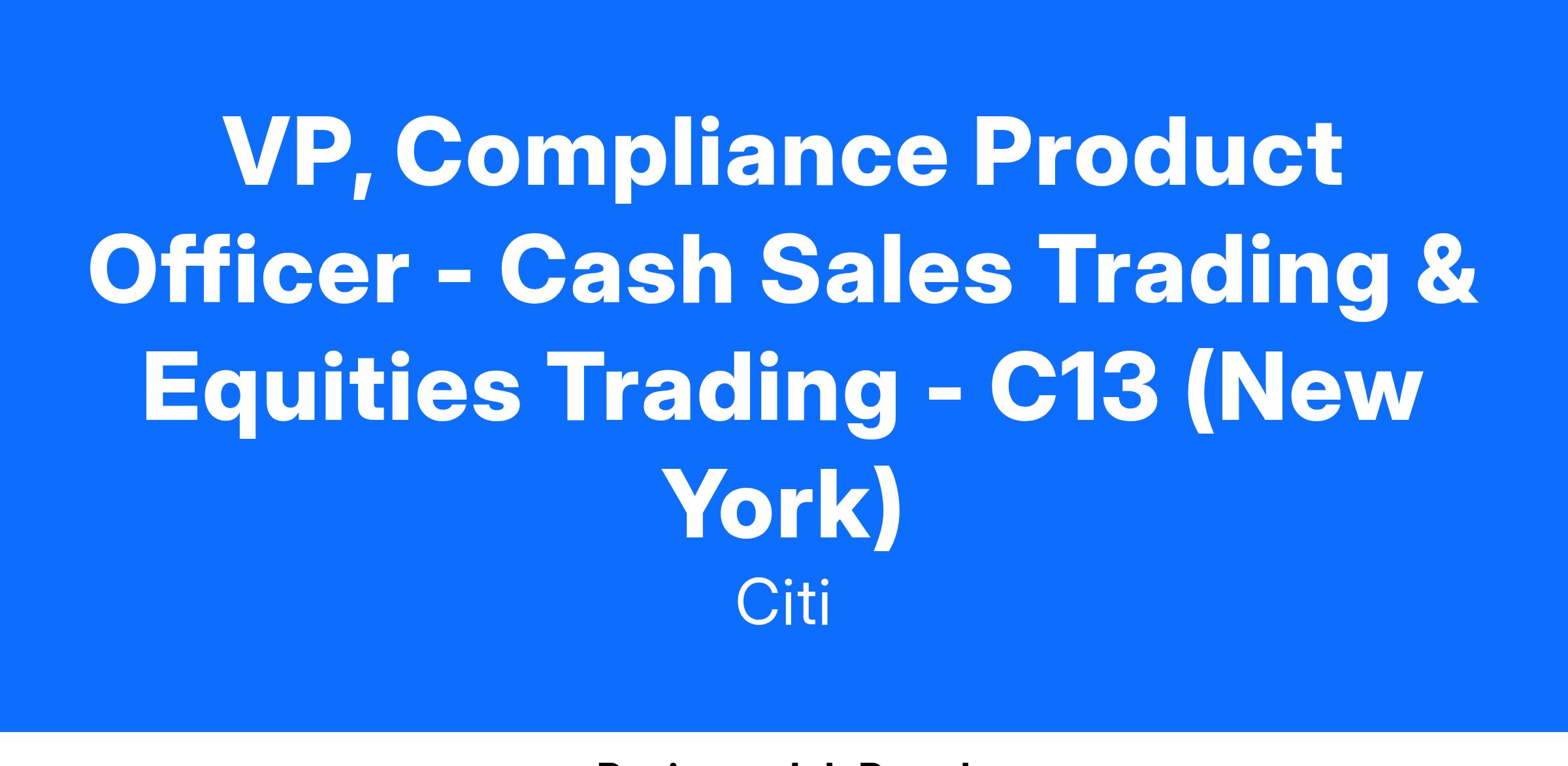 Citigroup Inc. and its subsidiaries ("Citiβ) invite all qualified interested applicants to apply for career opportunities. If you are a person with a disability and need a reasonable accommodation to use our search tools and/or apply for a career opportunity review Accessibility at Citi.