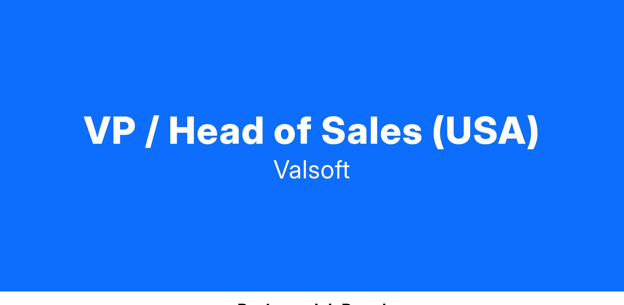 Job Title: VP / Head of Sales