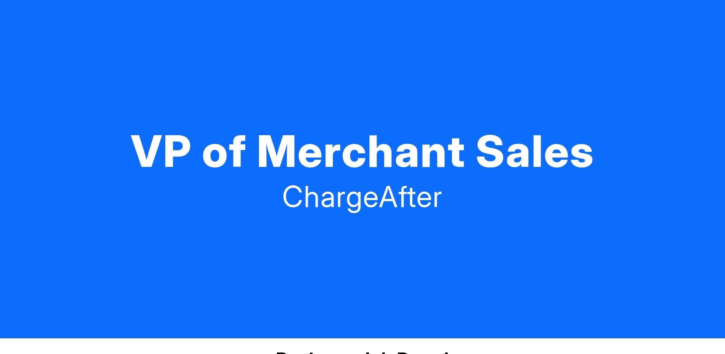 We are seeking a VP of Sales with a proven track record of success and results to leverage ChargeAfter's embedded lending platform value proposition in the market and drive strategic business opportunities.