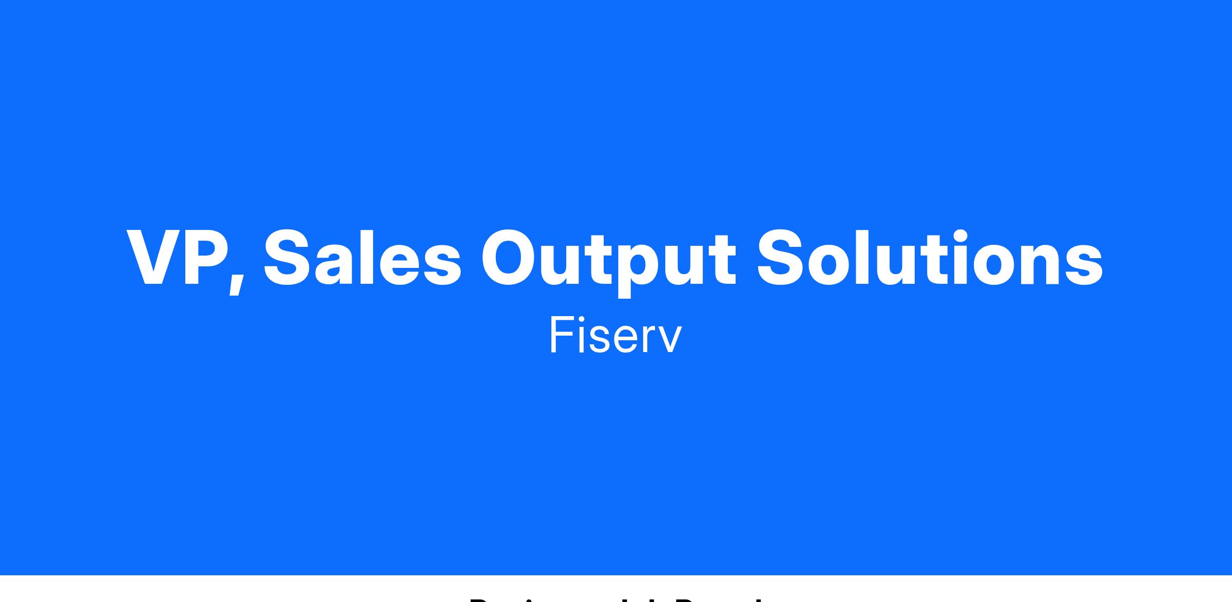 VP, Sales Output SolutionsWhat does a successful VP, Sales Output Solutions do at Fiserv?