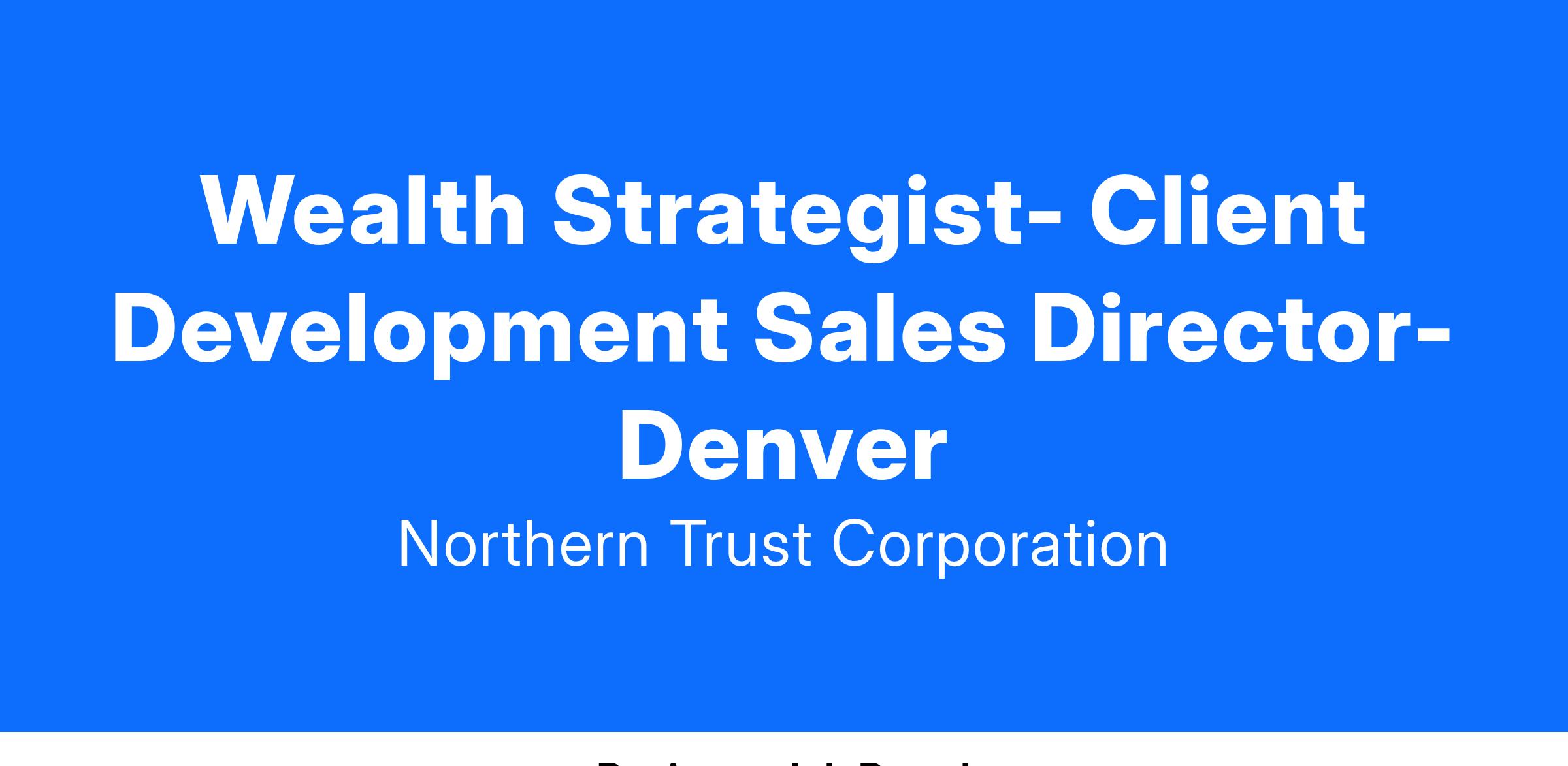 The Wealth Strategist / Client Development Sales Director is responsible for cultivating new relationships with individuals, families, non-profit institutions and other entities. As a member of the Wealth Strategist Northern Trust team, this individual will be responsible for new client development, solutions strategy and execution of the firm’s advice-driven approach. Leveraging our local team of specialists and national resources, the individual will identify prospective clients, present Northern Trust capabilities in conversations and meetings, and follow through to convert prospects to clients. The Wealth Strategist / Client Development Sales Director maintains ongoing contact with clients, promoting the enhancement and expansion of existing relationships. He or she will serve as a brand ambassador in the community, actively engaging as a leader for local civic and philanthropic organizations.