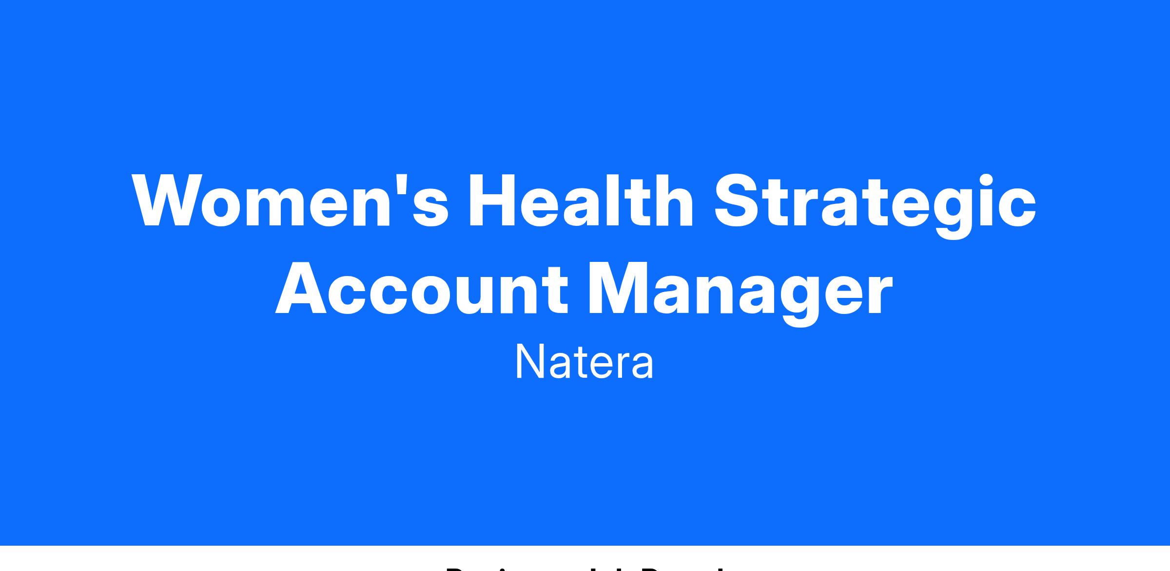 We are hiring a Women’s Health Strategic Account Manager (SAM) to join Natera! The Strategic Account Manager works with the local women’s health sales team to develop and execute strategies to increase Natera testing in IDNs, large hospital systems and Academic Medical Centers. This role involves internal collaboration, leading without authority, and forming relationships with key senior level influencers within health systems.
