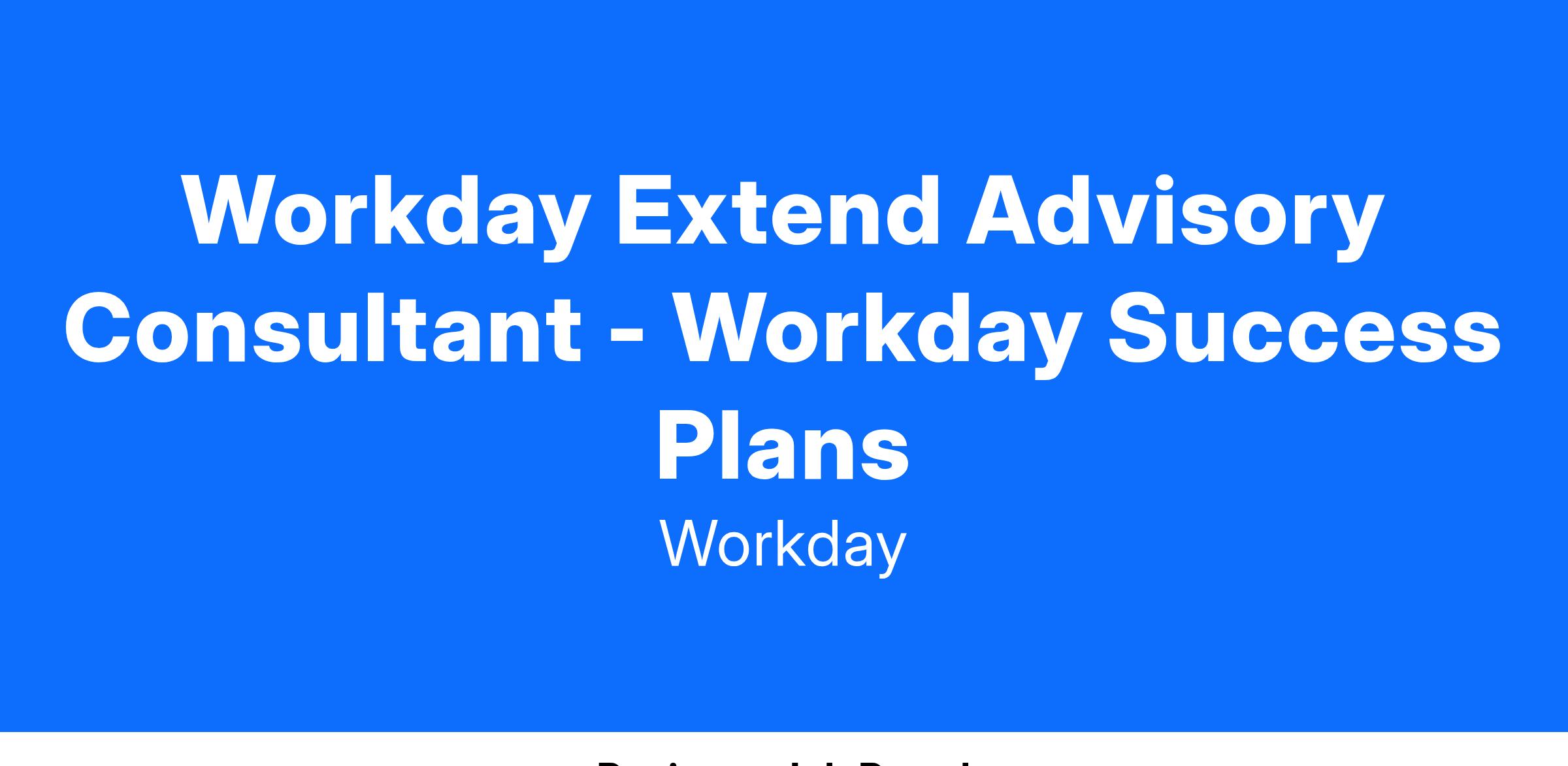 The Workday Success Plans Team are all about our customers and driving value for the customer's journey - we build and deliver services to help them drive business value from their Workday applications. The team delivers a variety of programs and services to our customers ranging from feature demonstrations, optimization assessments, thru adoption planning.