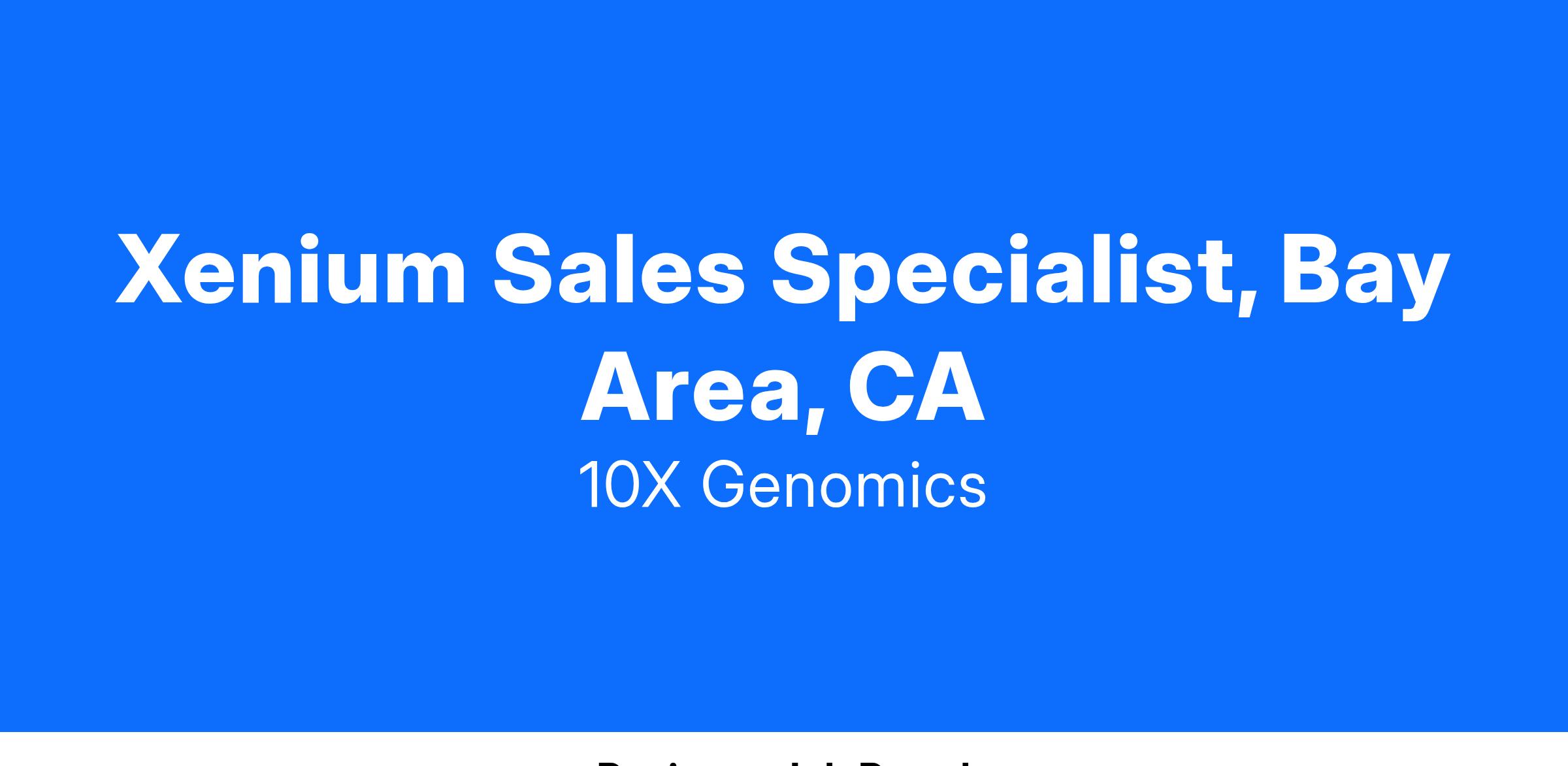 We are seeking a Xenium Sales Specialist, Bay Area, CA, for a field sales-based position responsible for the sale of our in-situ platform and reagents. The Xenium Sales Specialist will have strong technical knowledge in the spatial field and will demonstrate technical credibility to effectively consult with customers to influence key decisions on technology and product choices. Strong business acumen is required to build successful account and territory plans and translate territory strategy into business results.