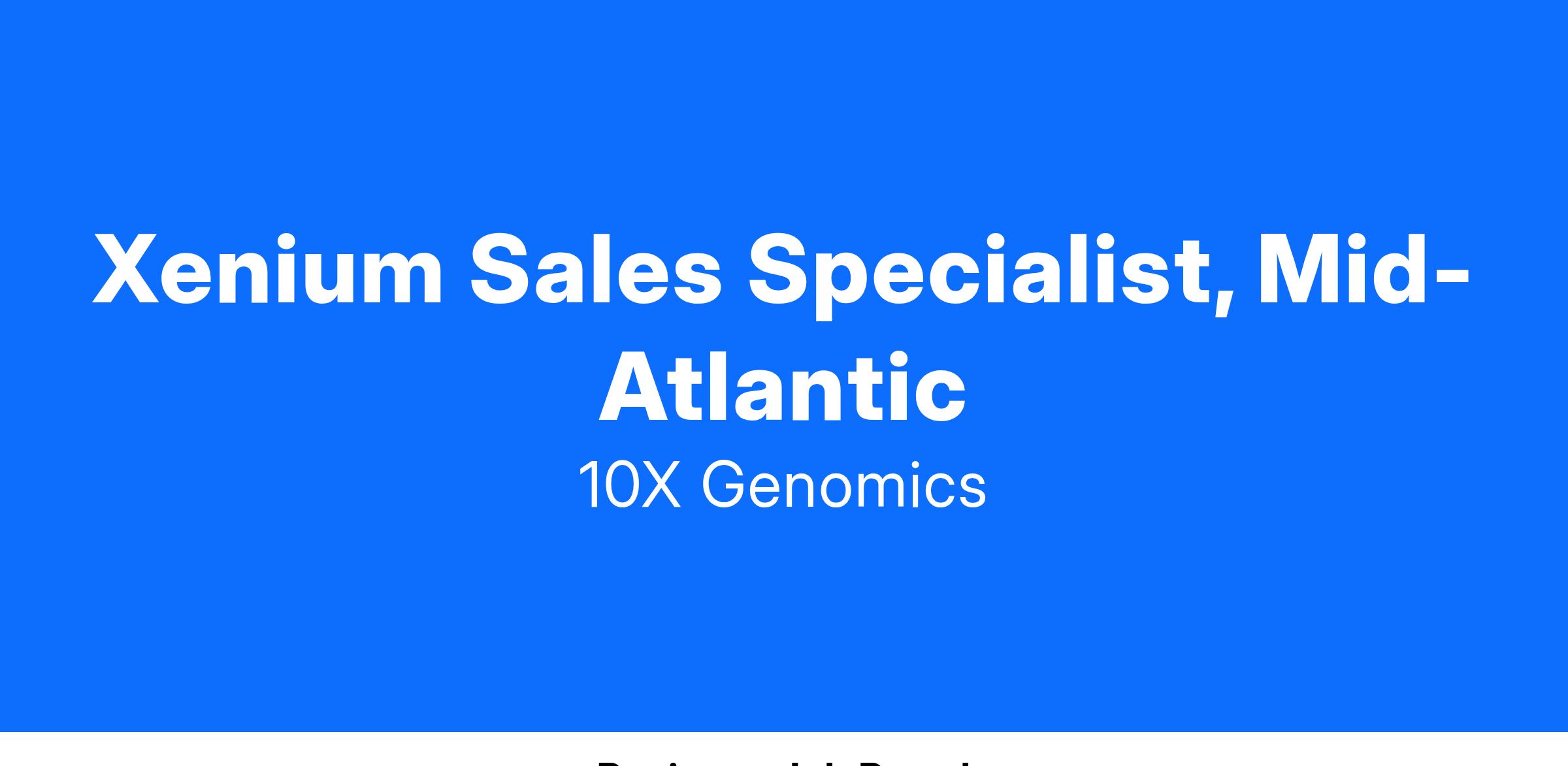 We are seeking a Xenium Sales Specialist, Mid-Atlantic, for a field sales-based position responsible for the sale of our in-situ platform and reagents. The Xenium Sales Specialist will have strong technical knowledge in the spatial field and will demonstrate technical credibility to effectively consult with customers to influence key decisions on technology and product choices. Strong business acumen is required to build successful account and territory plans and translate territory strategy into business results.
