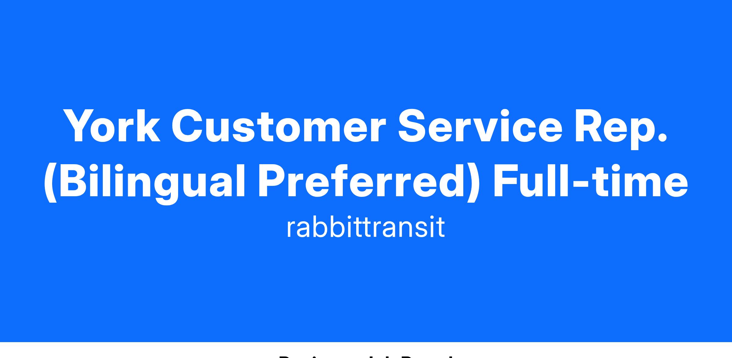 York Customer Service Rep. (Bilingual Preferred) Full-time